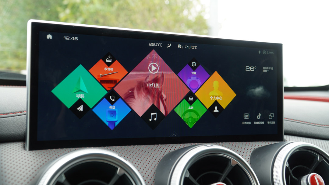 车机系统基于安卓打造,使用12.3英寸的窄边框屏幕,在车机屏幕来说,窄边框并不是那么容易,毕竟在车内屏幕要经受炎热、寒冷等各种考验。屏幕显示效果清晰,并且两侧可以定制个性化菜单,将自己常用的功能设置在首页。整体操作流畅,且UI设计精美,并且在导航时可以实现分屏显示,是目前汽车车机的一流水准。此外,车机系统支持自然语音识别,并且识别的效果比较出色,即便是小声说话也能够识别清晰,这一点值得点赞;甚至您可以在无聊的时候“调戏”几句,“小WEY”还会跟你斗斗嘴,增加行车时的愉悦感。