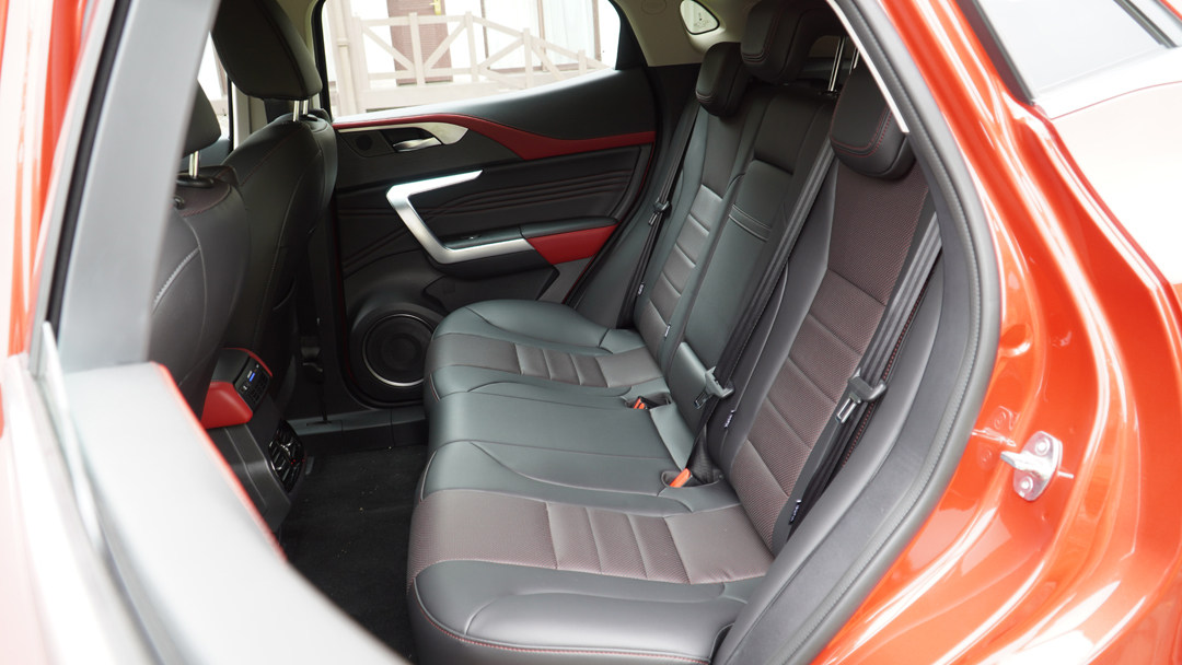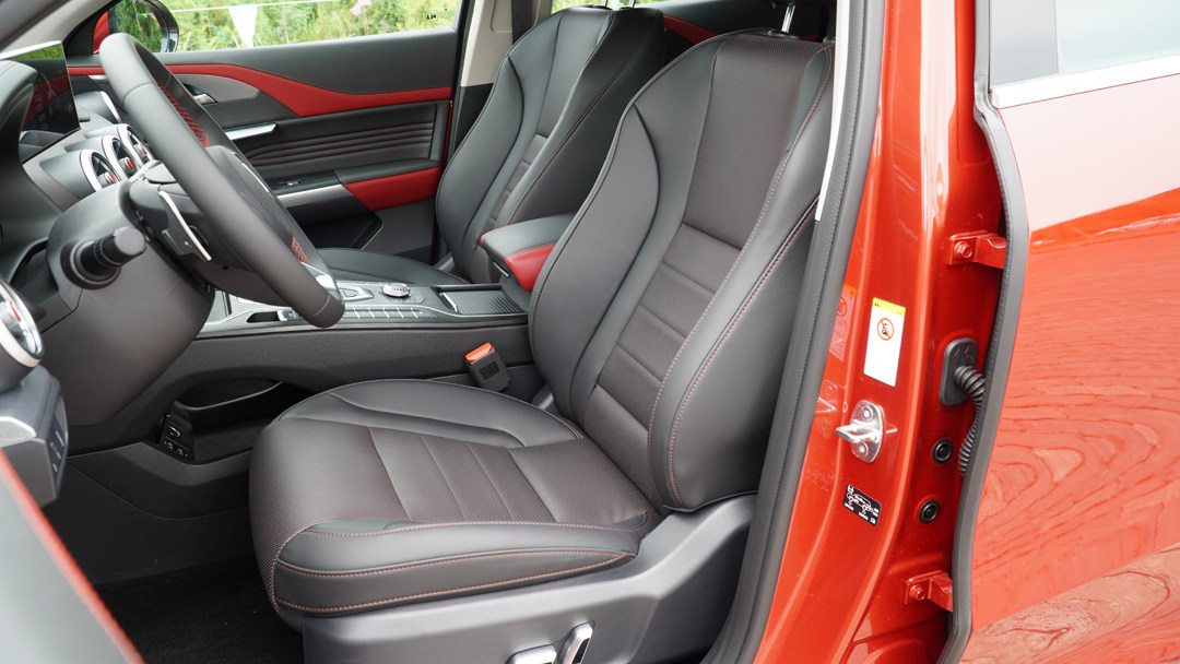 座椅的样式看起来比较舒适,但实际坐起来无论是包裹性还是侧向支撑都很不错,为了区别与老款车型,2021款车型座椅使用了红色缝线之余,还在中央部分使用撞色皮革设计。座椅填充物柔软之余带一点支撑,表面能给你很好的贴服感,但深层又能给你足够支撑,是一套称职的座椅。