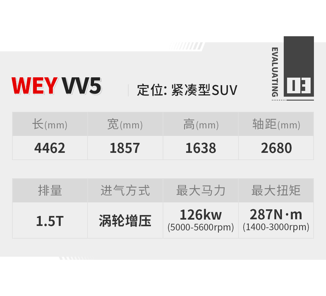 WEY品牌在当年推出至今仍然保持着不错的活力,前段时间VV7 GT就与巴博斯合作,推出VV7 GT巴博斯版车型,全车运用相当多的碳纤维材料,在同级别来说独一份。而VV5是WEY家族里面最小的一员,会不会因此“缩水”?