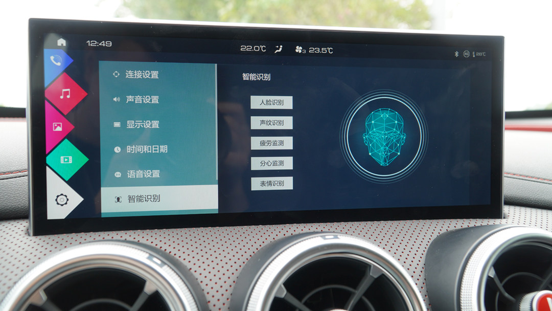 A柱上配备了一个智能识别装置,可以进行人脸识别、声纹识别、疲劳监测、分心检测、表情识别等功能,针对驾驶员的各种不利于行车安全的行为进行提醒。我们在奔驰S级上看到摄像头检测到驾驶员倒车时转头,就会自动降下遮阳帘,相信VV5实现类似智能化功能指日可待。