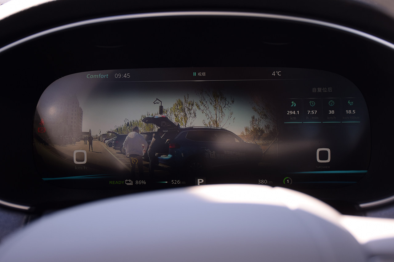 方向盘后方是12.3英寸的全液晶仪表盘,其中亮点功能之一就是加入了增强实景导航功能,大大增强了这台上汽R ER6在可视化上的表现。