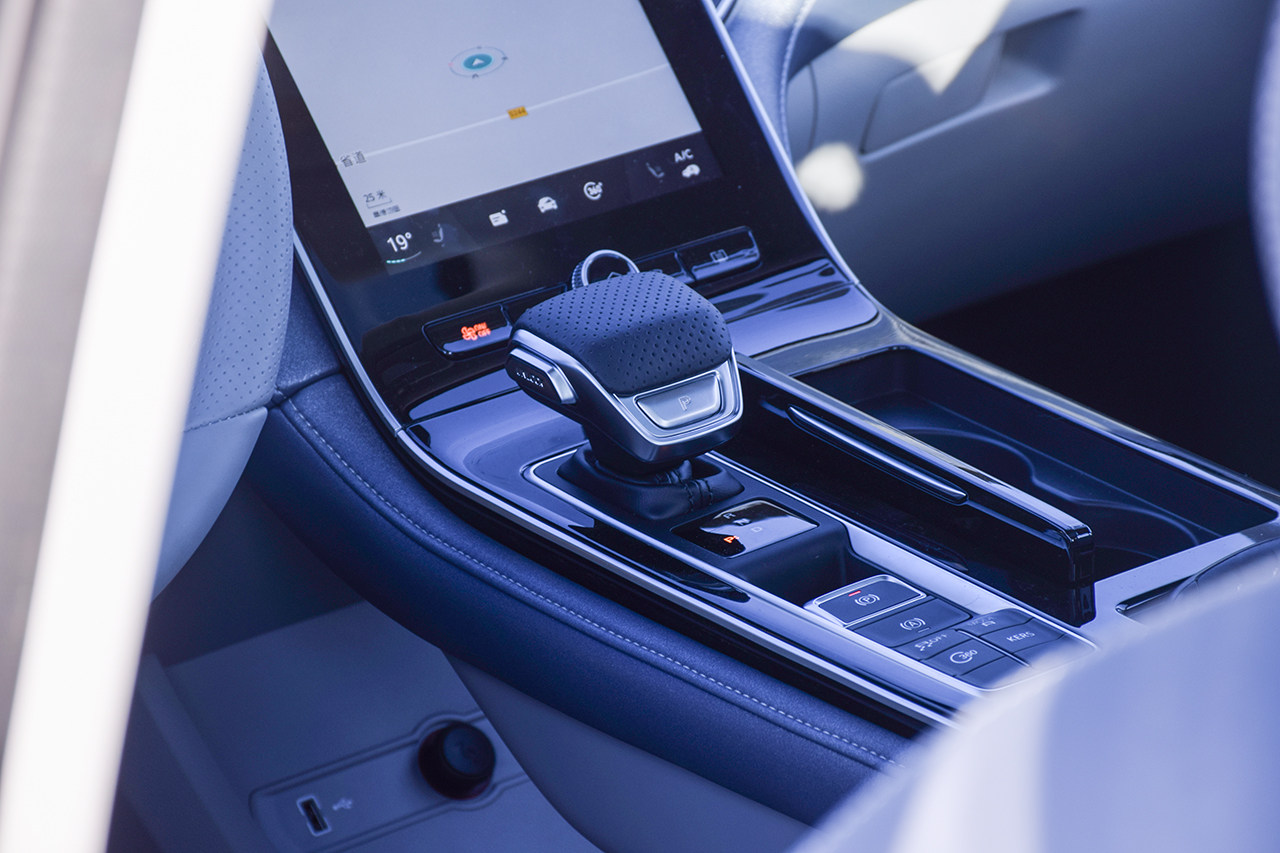 电子挡杆包括周围的功能按键设计的很简洁,并且所占面积也不大,视觉上足够简约。