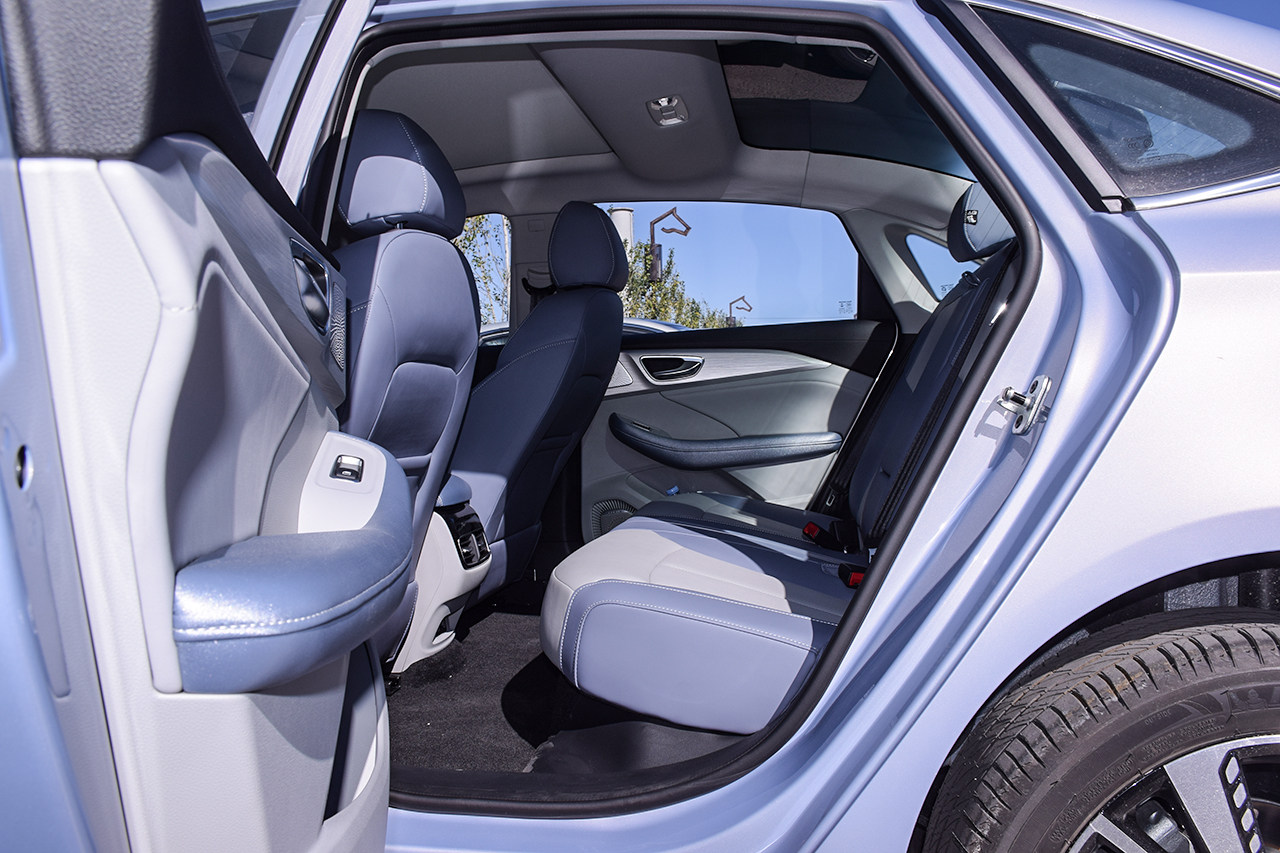 第二排最显著的一点就是地板整体偏高,这跟特斯拉Model 3体验是一样的,特斯拉的解决方案是把座椅臀点设计的很低,而上汽R ER6并没有那样处理,第二排座椅高度还是较为充裕的,腿部能有舒展空间和良好承托。