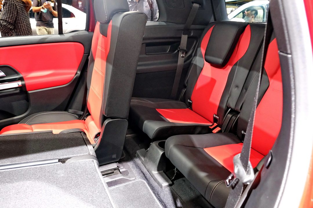 奔驰GLB在官方说法上,是一款5+2座的车型,它背后的含义是,GLB的第三排是应急用的,并不建议大家在第三排长期乘坐,因为它真的很小。从GLB 35的侧面可以看到,A柱-B柱,B柱-C柱之间的长度相近,而C柱-D柱的长度远远短于前两者,所以GLB 35的第三排看上去就像强行塞进去的。