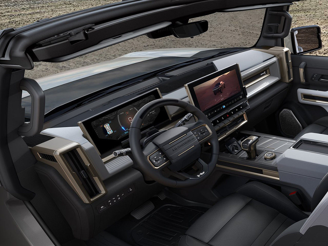 悍马EV的内饰也相对硬核,线条大多采用直棱直角的手法,满满的硬汉风格。不过新车也满足潮流的发展,加入了13.4英寸大型信息娱乐屏幕和12.3英寸数字仪表板,驾驶者可以轻松知道扭矩输出、锁止差速器状态、轮胎压力、俯仰和滚转角、扭矩分配等信息。