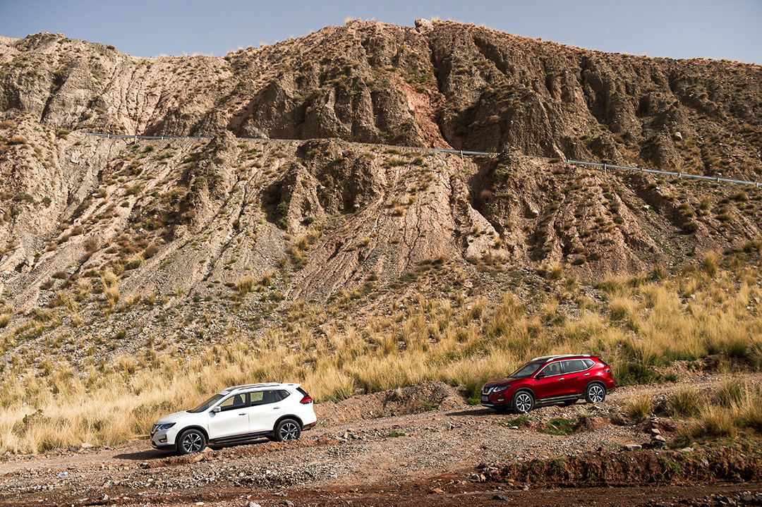 我们此次试驾的车型为2021款日产奇骏,225/55 R19的轮胎在一开始的时候我还担心吃不消,毕竟碎石路段上面的石头都不小,而且车队的行驶速度一点也没有放慢,但幸好一路下来轮胎都没有出现异常。