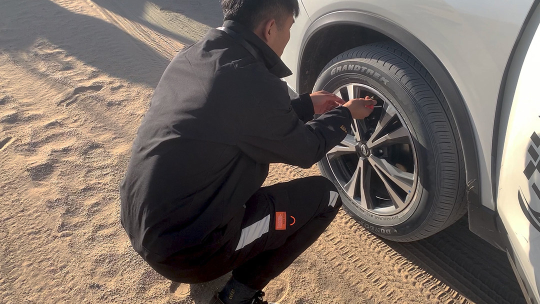 进入沙漠前还是有很多准备工作的,首先需要把轮胎的胎压放低至1.0-1.2Bar左右,增大轮胎与沙漠的接触面积,然后关闭ESP电子辅助设备,避免车辆受到动力的限制,最后再插上旗杆,这样在沙漠中队友就更容易看到你。
