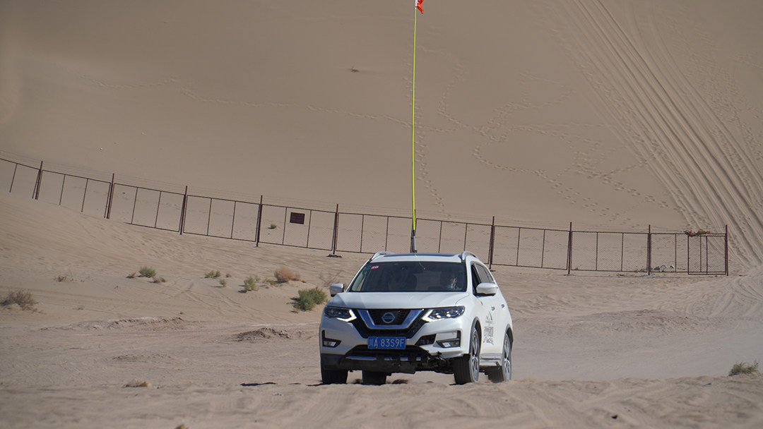 在第二天的行程里,我们将这台奇骏开进了库木塔格沙漠穿越,这沙漠面积约为2.2万平方公里,是中国八大沙漠之一。而且这次并不是简单的越野冲沙,而是55公里的真实穿越。我们从早上9点半开始进入沙漠,直到下午两点半才出来,这无论对人还是对车辆的要求都非常高,不禁让我对这台奇骏更加的期待。