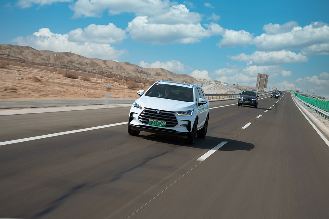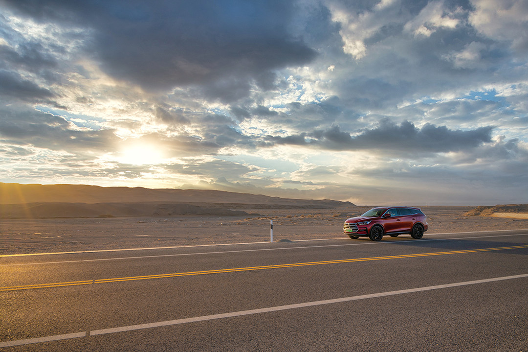 从敦煌出发之后,我们就沿着柳格高速一路东行,在开启了定速巡航和车道保持辅助系统之后,我们便可以将脚从油门踏板上放下来。不得不说,2021款唐DM的驾驶辅助系统做得很智能,车道保持辅助系统可以将车辆时刻稳定在车道的中间,对于车辆偏离的调整准确而又迅速。遇到前方车辆汇入的时候,刹车线性及时,对于行驶安全有一个很大的保障 。