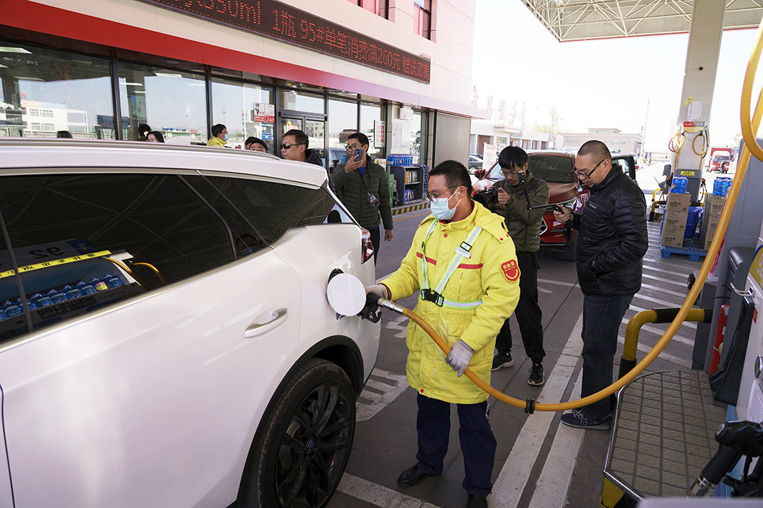 在到达了永昌服务区之后,我们的节油赛也就结束了,总共847km的路程,中途从未加油充电。此时几乎每台车都油箱见底,电量耗尽,这也能够说明唐DM出色的续航能力,满油满电状态下的实际续航超过900km。
