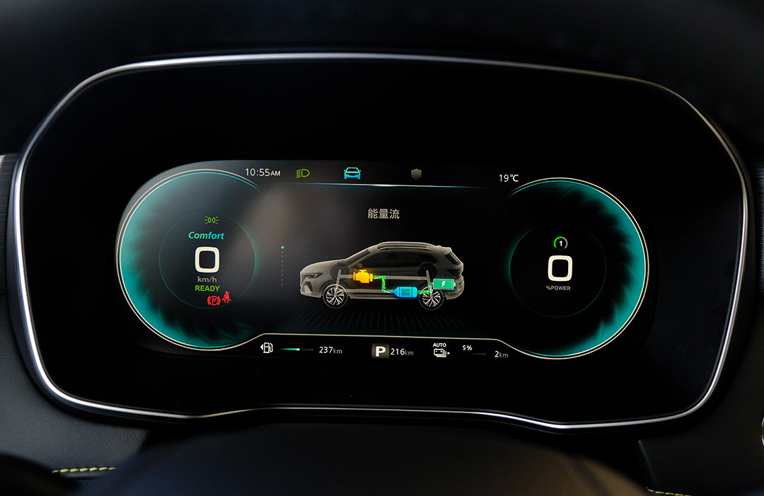 目前新车搭载的是荣威第二代混动系统,经过近10年的发展,荣威的混动系统取得了十足的进步。插电混动系统的宗旨是处理好油跟电的关系,但很多插混车型电用完了之后,油耗和性能都大打折扣。