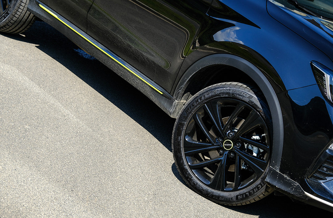 此外新车采用的是235/45 R19的米其林轮胎和19英寸黑色轮圈,战斗气息十足。值得一提的是,每条米其林轮胎价值1900元,钱都落在了实处,值!