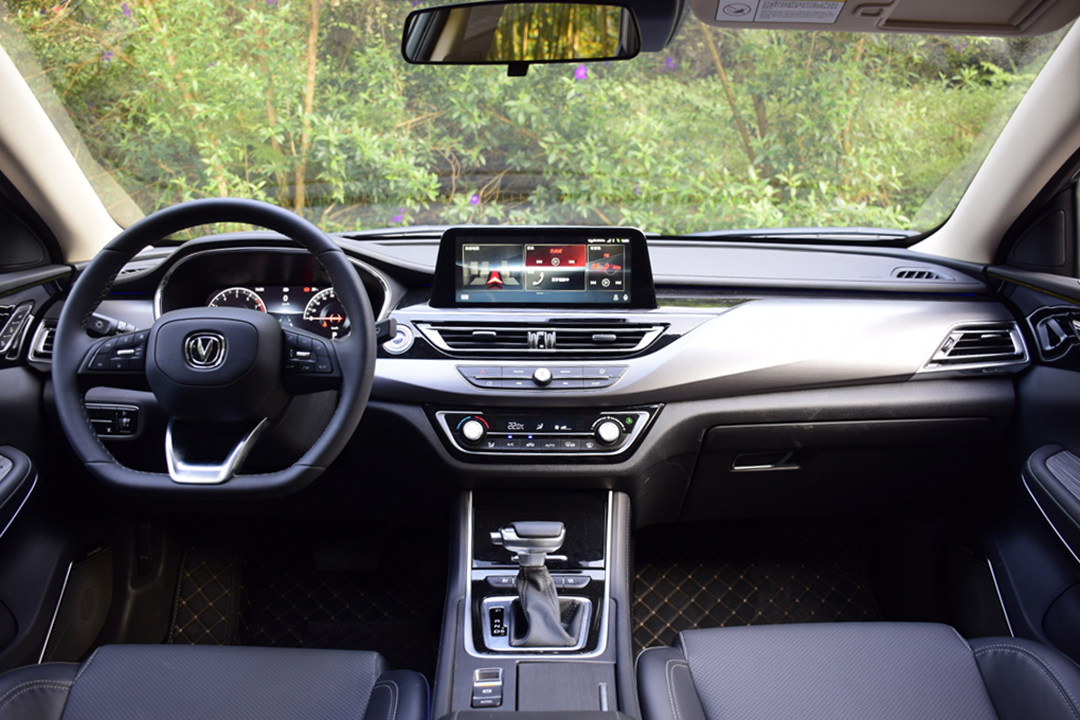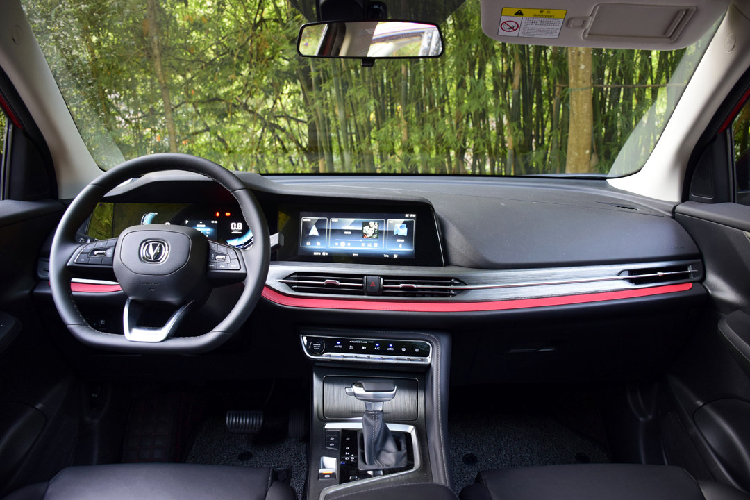 内饰与普通版车型最明显的区别在于使用了跟CS55 PLUS同款的方向盘,还有全新样式的挡把造型。中央显示系统的UI跟CS55 PLUS蓝鲸版上有些许区别,但总体功能类似。同样,中央显示屏也可以通过个性化设置其菜单的布局。
