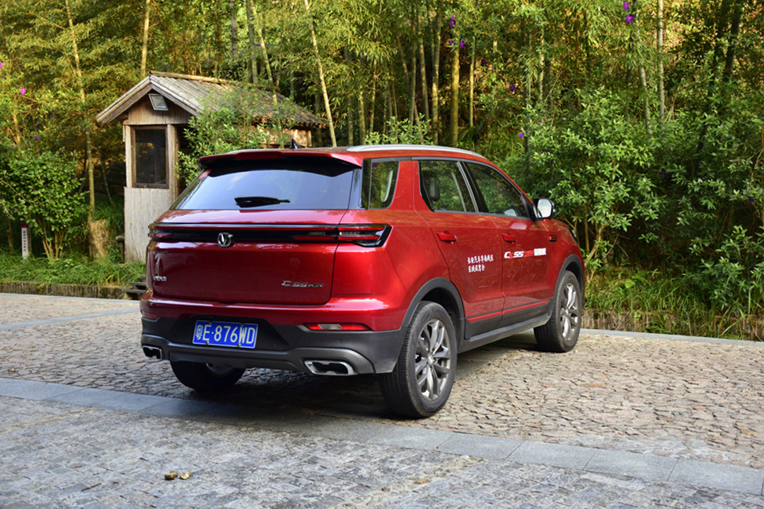 车尾整体变化不明显,贯穿式的尾灯依旧找它的存在感,并使用全LED光源,在亮度以及辨识度上都有更好的效果。跟普通版CS55最主要的区别在于下方排气管装饰稍稍改变了造型,但其实真正的排气管在下方,这仅仅是个装饰而已。