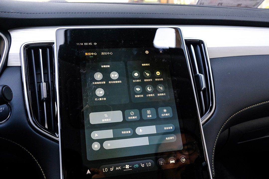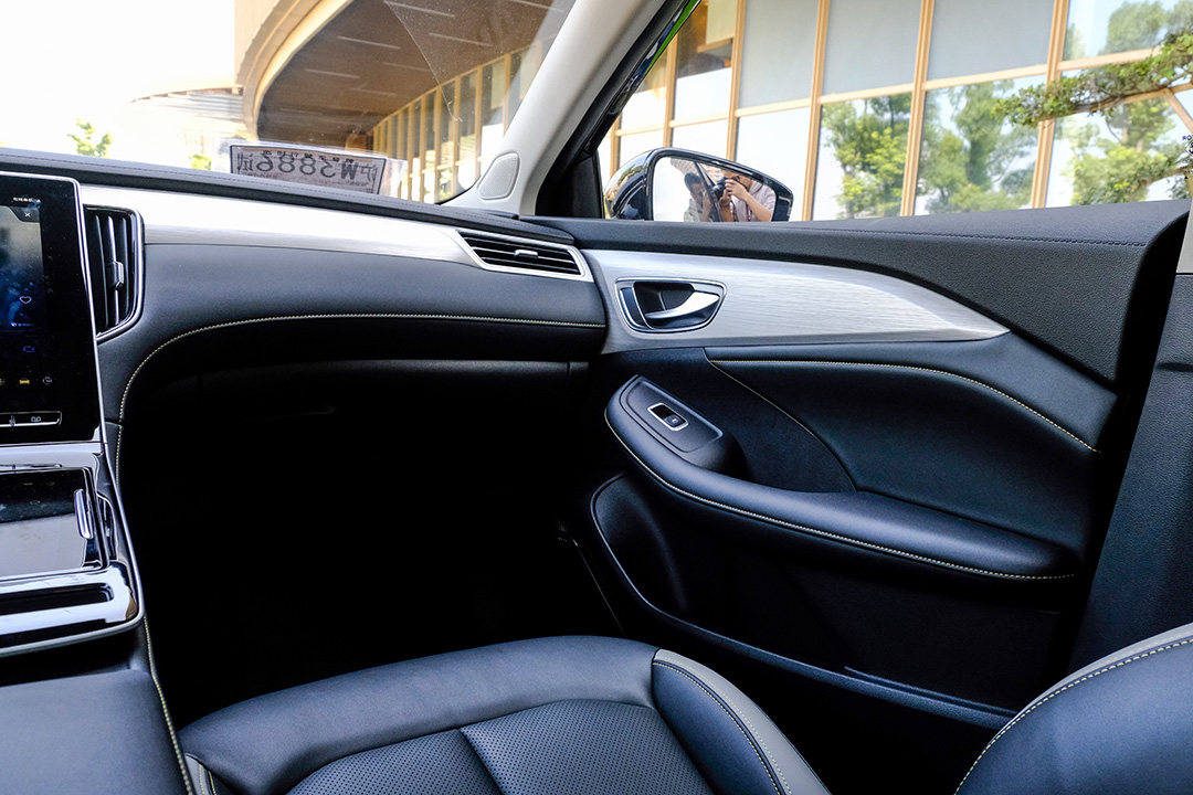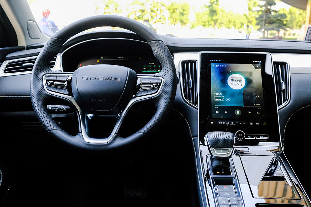 试驾车为顶配车型,所以配有12.3英寸的液晶仪表盘、14.3英寸的中控触摸屏,车机功能多样且屏幕分辨率清晰,同级别少见。荣威ei6 MAX即便是顶配车型,指导价也不过15.68万元,对于一辆插电混动车型来说,价格比较诱人。