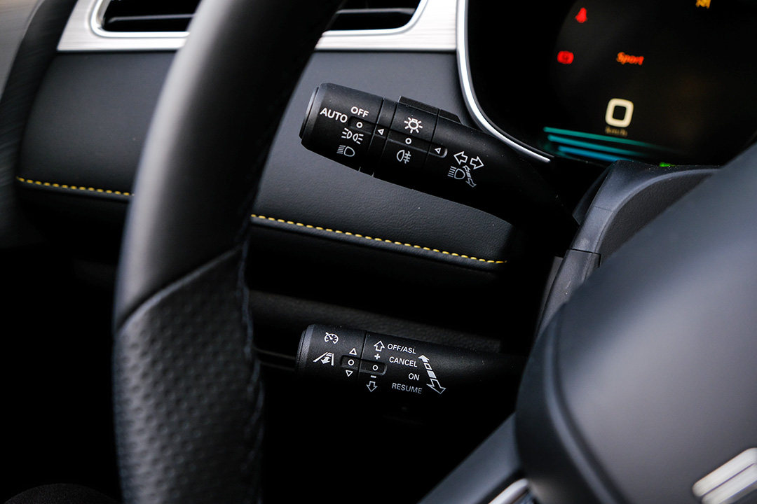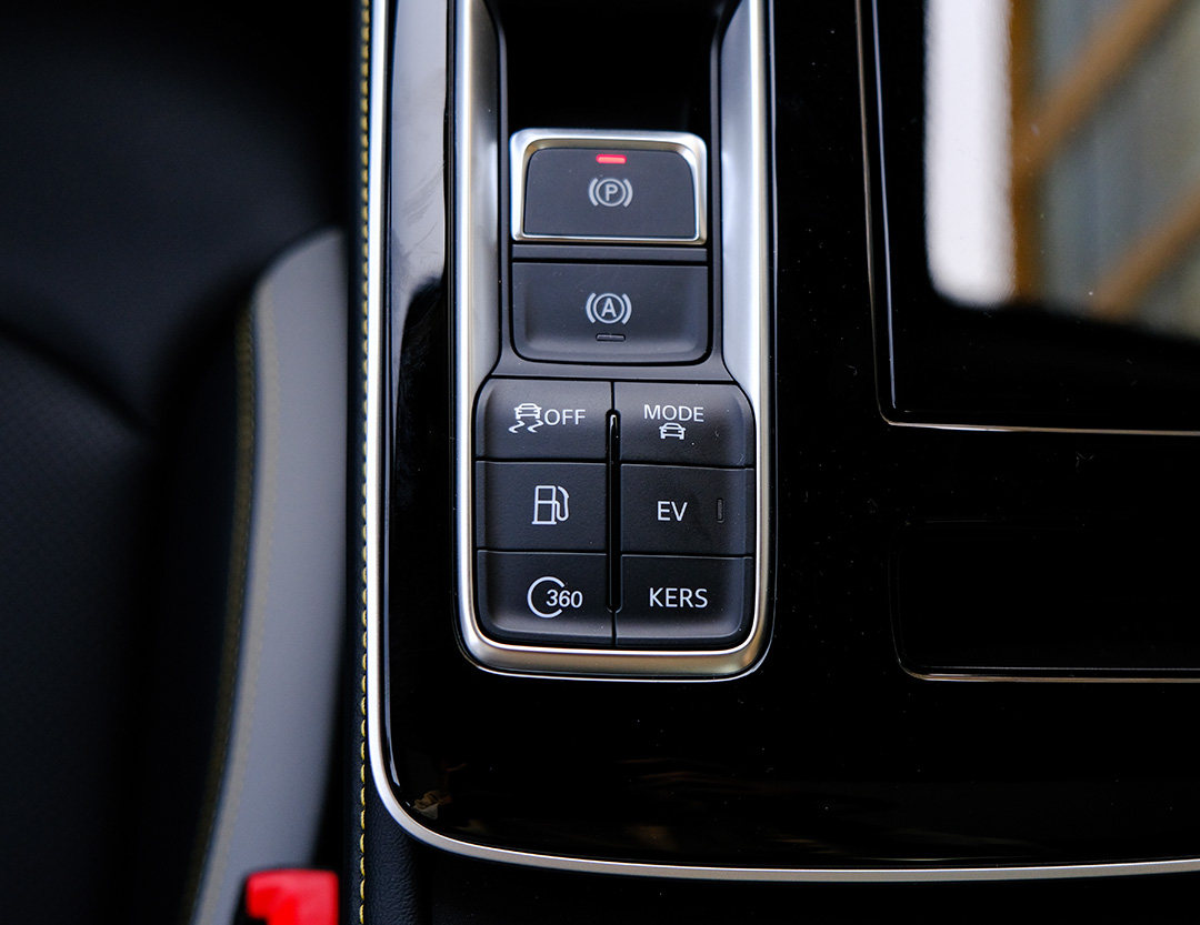 在挡把的左下角区域可以自由选择驾驶模式,纯电模式只需要按一下“EV”键即可,“MODE”键可选择ECO、COMFORT、SPORT三种模式。纯电模式续航有70km,城市代步上下班基本足够了。