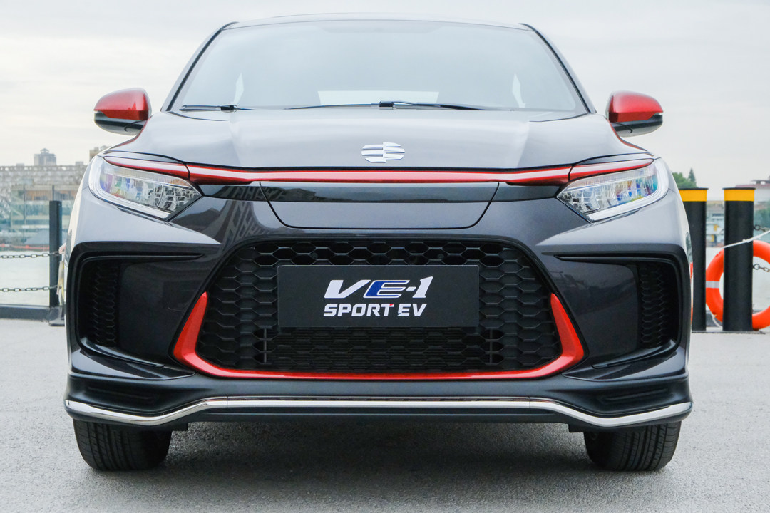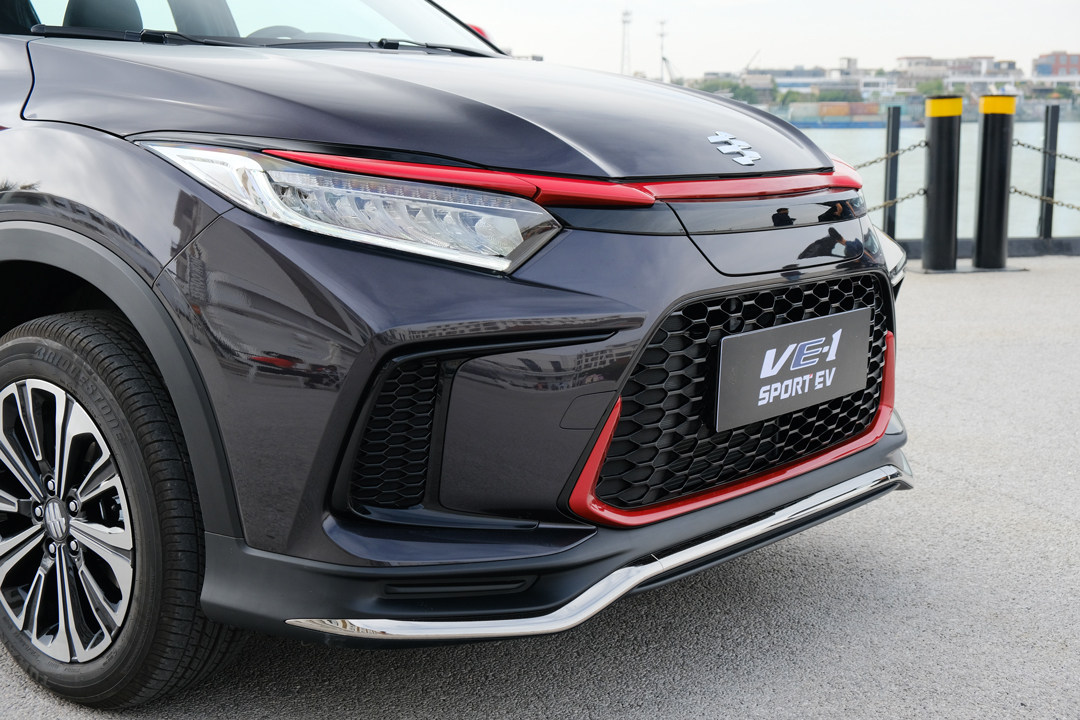 与普通版素色车身颜色不同的是,VE-1 S+采用了双色设计,如前脸上方有一条红色装饰条贯穿左右头灯之间,下方中网同样也采用相同的红色装饰条进行勾勒。