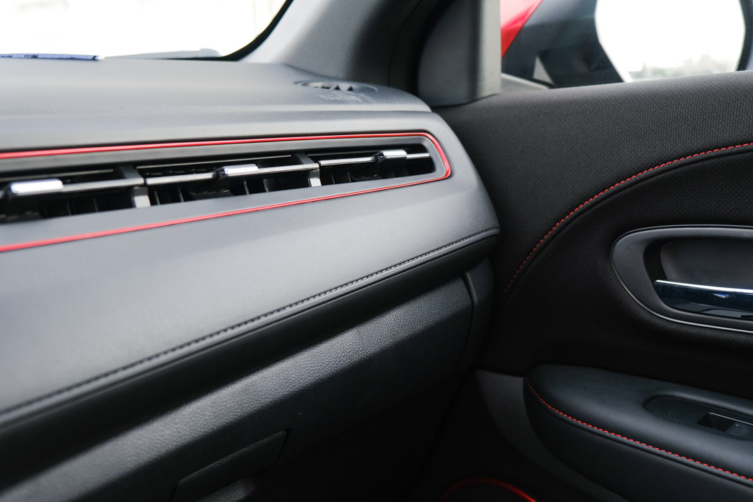 车内采用了与外观装饰件相同的红色配色进行搭配,空调出风口、音响喇叭都采用红色装饰条包围。方向盘采用红色缝线设计,座椅也加入了红色元素,比起普通版而言,VE-1 S+内饰更为年轻运动。