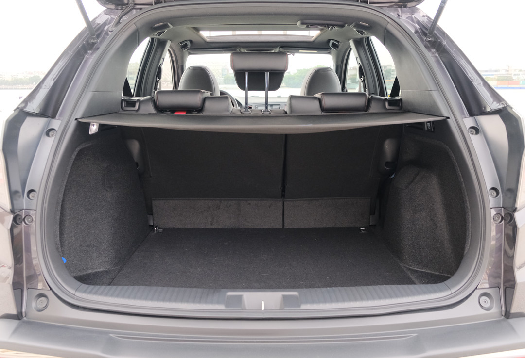 身高180cm的乘客为例,前排头部空间还有着一拳的空隙。而在前排调整好坐姿后,后排同样还有着一拳两指的腿部空间,以及一拳的头部空间。对于一台小型SUV而言,这样的空间表现实属难得。