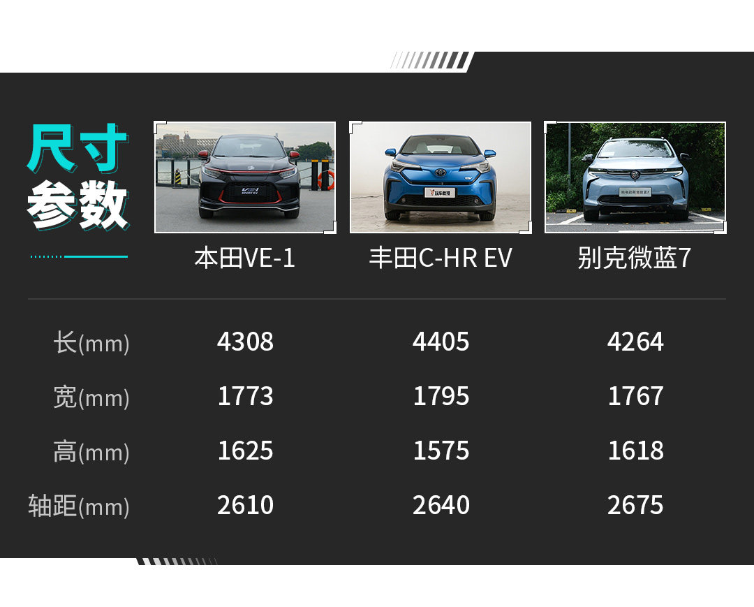 其燃油版车型缤智在业内的口碑一向是以空间大所著称,而这点优良品质同样被VE-1所继承了下来。新车长宽高为4306/1773/1625mm,轴距为2610mm,虽然在尺寸上没有太大优势,但实际空间表现却呈现相反的局面。