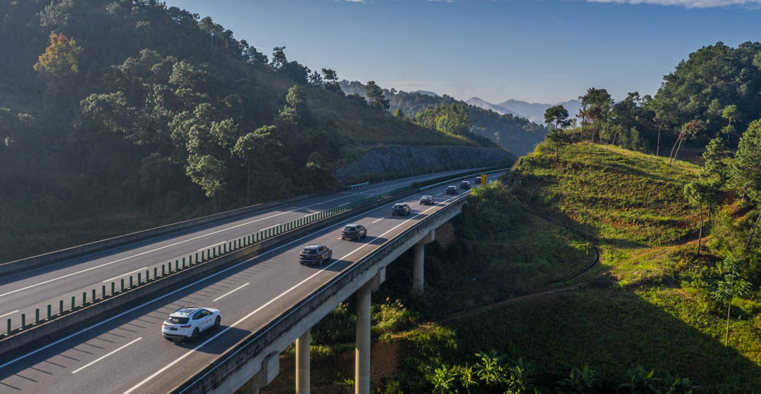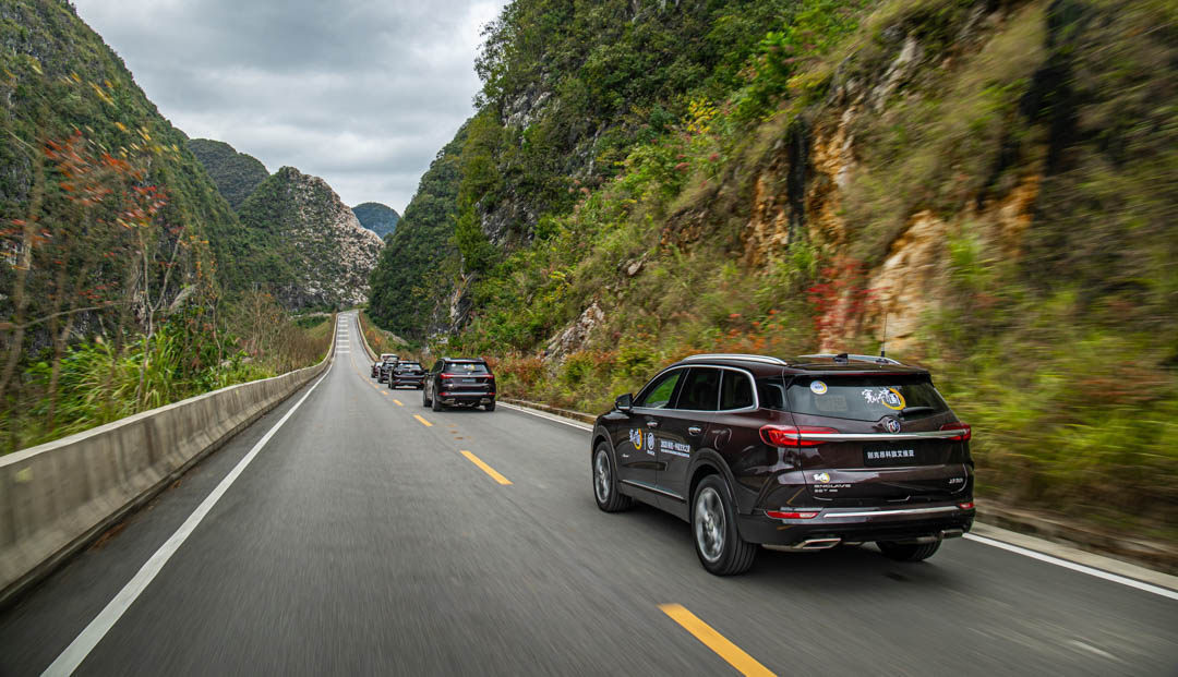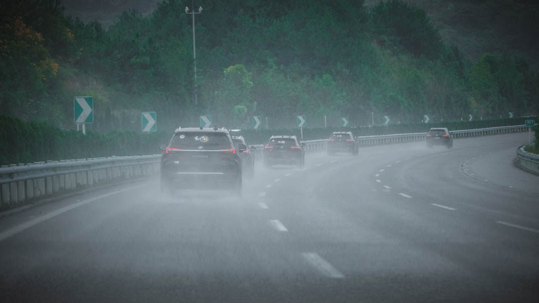 由于此站活动的行程将近700km,还没来得及对这款车细细端详,车队就已经整装待发了。我们第一天所在的地方是黔南布依族苗族自治州龙里县,那里大多是向丘陵过渡的斜坡地带,且为亚热带湿润季风气候,所以当天的路面不光湿滑而且温度较低,于是车队也放慢了行驶的速度。