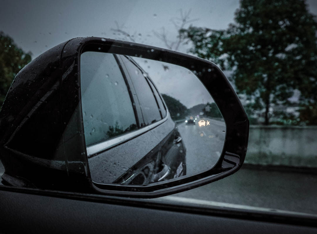 在离开了贵阳市区之后,我们的车队驶上了高速公路,由于当天的雨势忽大忽小,所以我打开了昂科旗艾维亚的四驱模式,配合自动雨刮和自动大灯功能,即便外面下着倾盆大雨也丝毫不惧。而且凭借车身周围的多个传感器,下大雨时如果后方有高速来车,后视镜的右上角便会高速闪烁提示驾驶员有车接近,大大提高了行车过程的安全性。
