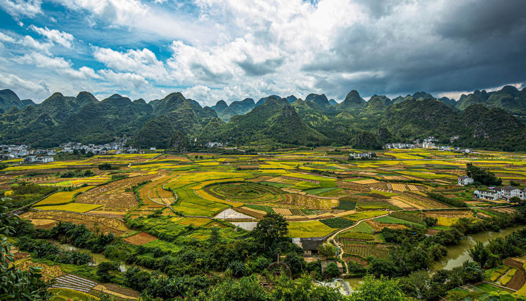 在经过一阵激烈且富有乐趣的山路驾驶之后,我们到达了万峰林景区,登上一座高山,眼前是无数经过数千年演变而来的喀斯特地貌,看着面前金黄的稻田和绵延的山脉与天空如同融合在了一体,同行的人群纷纷陶醉不已,而我却有一种征服者的快感,开着昂科旗艾维亚翻过一座座山峰然后收获这样的美景,成就感十足!