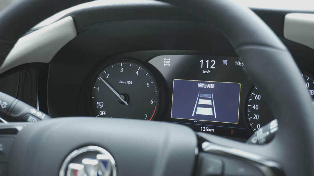 由于路程较长,于是我把更深入的体验留在了后面更具挑战性的山路驾驶,得益于路面车辆较少,我打开了车辆的ACC自适应巡航功能,该功能主要通过方向盘左侧的多功能按键控制,将车辆速度保持在想要的范围内,通过车前方的多个雷达和摄像头,电脑会自动控制车辆的油门和刹车,自动与前车保持一定的距离,当前车减速时就会自动减速,车距被拉开时也会自动跟上,十分适合长途驾驶,大大降低疲劳感。