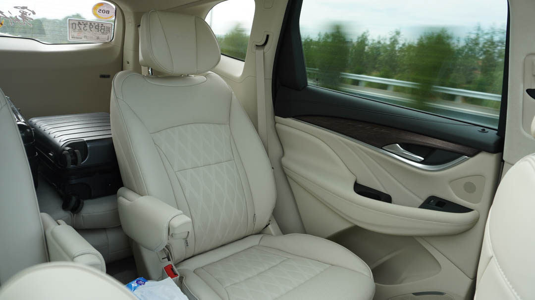 对于昂科旗艾维亚车型来说,长途出行怎么能错过它的后排座椅呢?该车采用的是六座布局,其中第二排是两张独立的航空座椅。在第三天前往昆明的路上,小编果断选择了体验它的第二排座椅。我坐上去第一反应就是支撑十分到位,座椅的靠背与人体的背部完全贴合,而且扶手和头枕均可以进行多向的调节,乘坐感受完全不输任何豪华MPV车型。