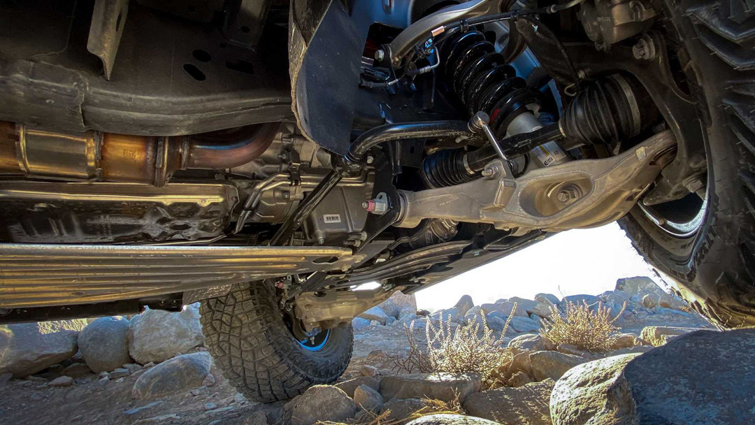 工程师们还修改了悬架的几何形状,让TRX在轴距上增加了20mm,以适应35英寸的轮胎。