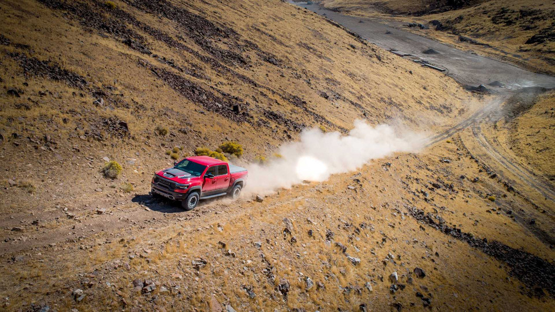 在内华达州卡森市,在越野公园内,有令人生畏的下坡、跳跃和陡峭的攀岩等项目,对于RAM 1500 TRX来说是一次挑战,但工作人员似乎不以为然。