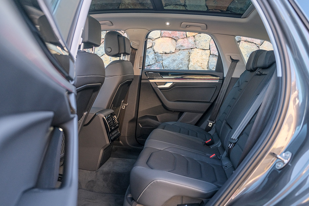 所以途锐的后排算是一个弱项,整体的空间表现只能是够用的水平,坐垫长度稍微偏短,对大腿的承托不够到位,而且扶手处只有两个杯架,后排乘员的“权限”不高。
