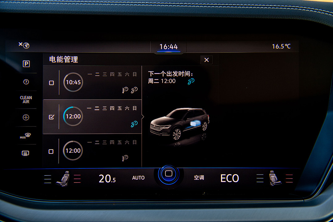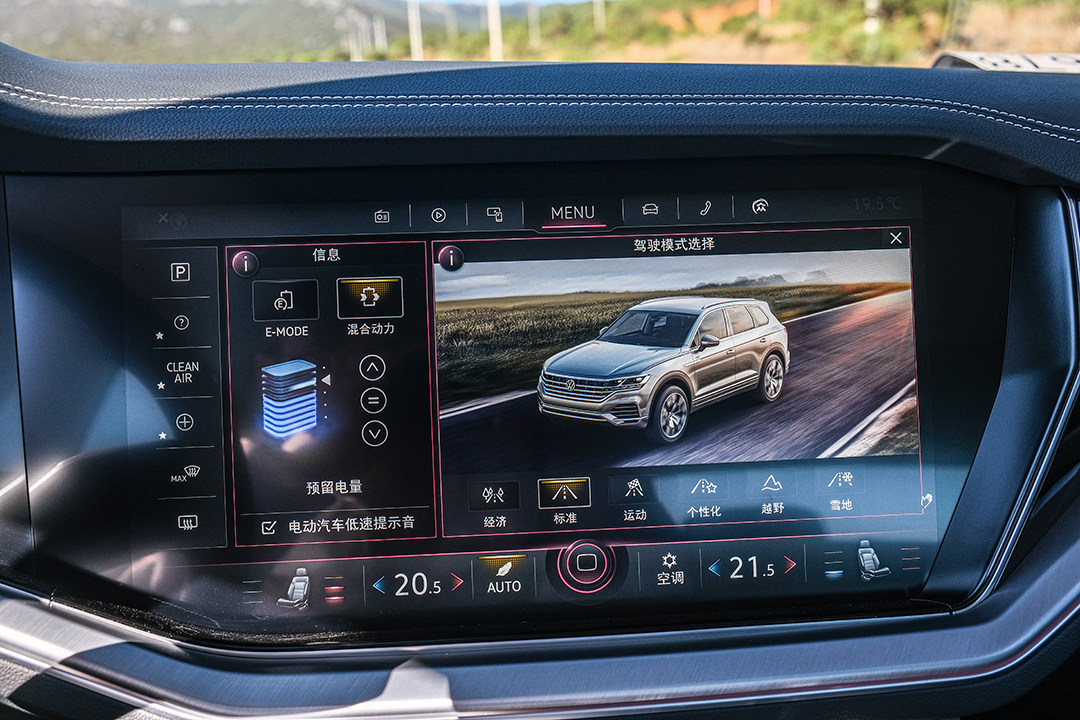整套系统非常简单,大众就是希望途锐eHybrid的混动系统不过多去干预驾驶者,所以它在中控只有一个小界面,甚至都没有动能回收的强度调节。