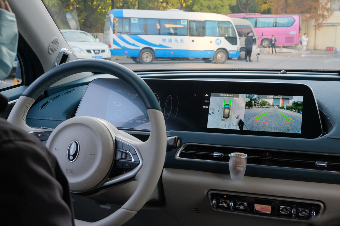 此外欧拉好猫的另外一大亮点就是其自动泊车功能,在试驾中我们也实际体验了一把。开启自动泊车功能后,低速状态下好猫能自动识别路边停车位,在停在合适位置后即可点击屏幕中选定车位进行自动泊车。