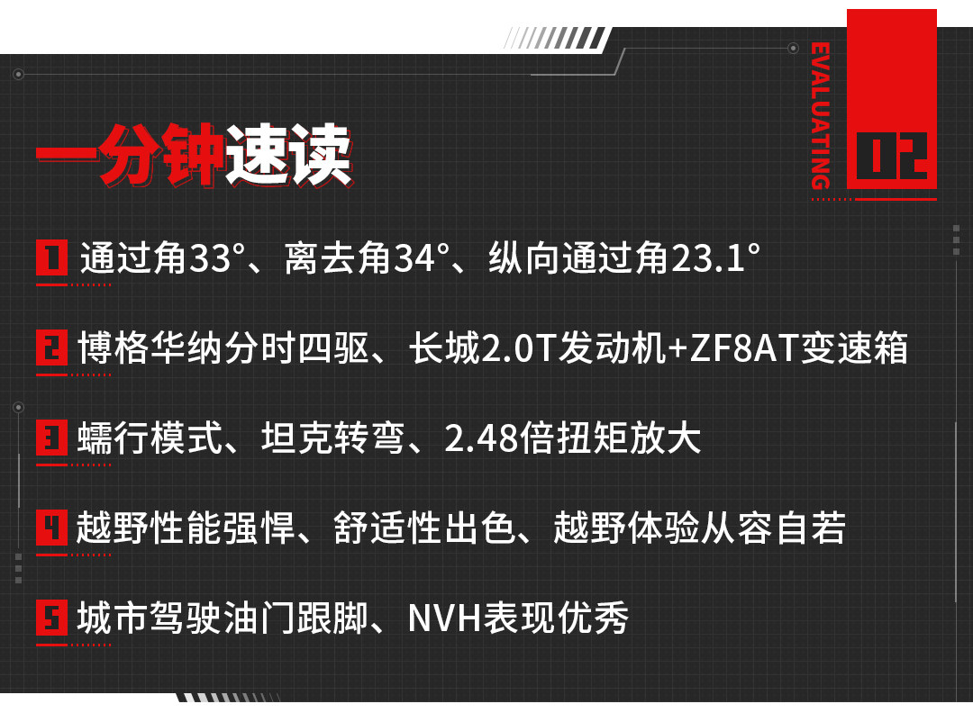 相信大家最关心的还是坦克300的性能。动力方面,坦克300搭载长城自家研发的2.0T发动机,变速箱是来自采埃孚的8AT,采用博格华纳分时四驱系统。