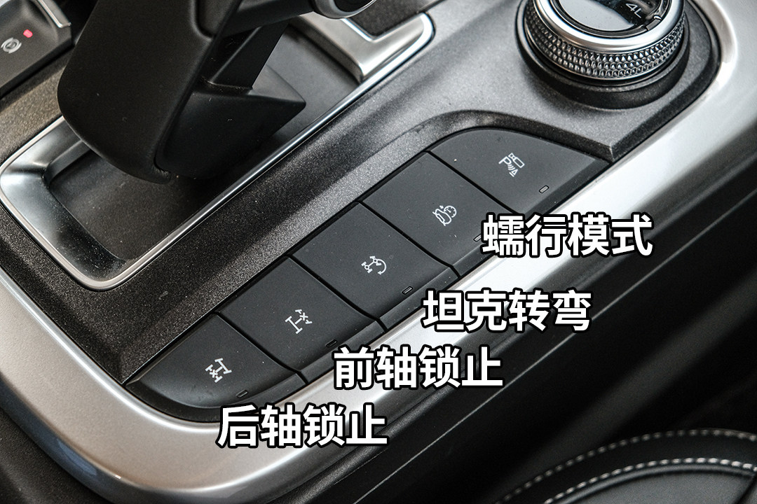 当然不仅是硬件方面,坦克300也有非常强大的越野系统。包括蠕行模式,蠕行模式开启之后车辆会自动控制车身的各种动作,驾驶者只需控制方向,最低蠕行速度为5km/h,最高为12km/h,非常的强大,即使是经验不娴熟的驾驶员也可以轻松通过各种路况。