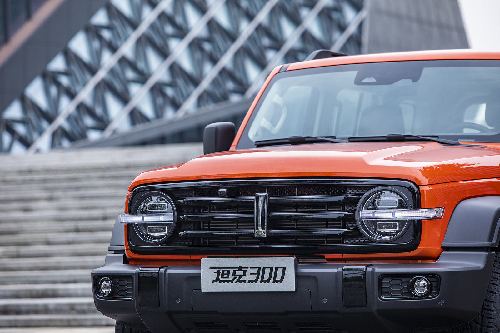 这是坦克300首次以无伪装形式亮相在城市里,整体的车身结构与设计,可以给人一眼即明的硬核越野形象,方盒子硬派轮廓、大圆灯设计,以及高高在上的威武姿态,都是一辆硬派越野SUV典型元素。