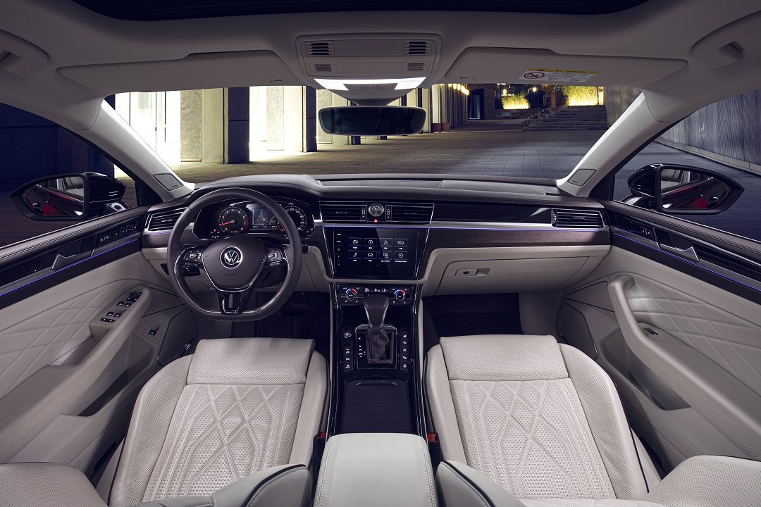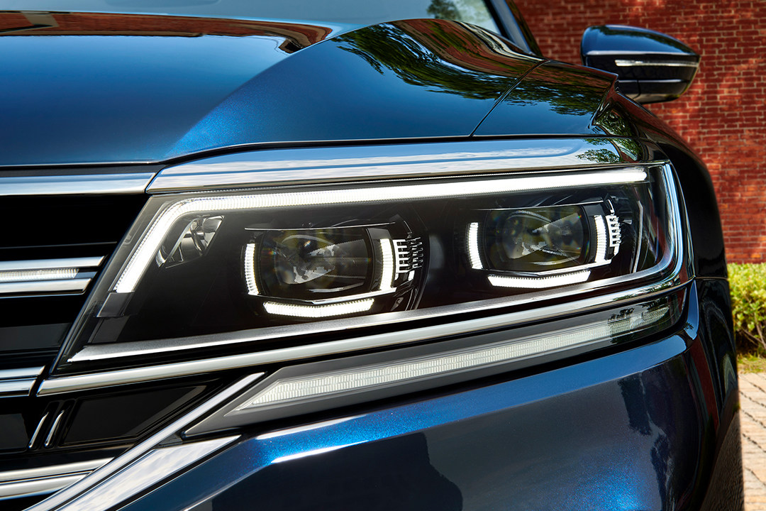 最大的变化在于车头的VW车标,采用了LED发光LOGO搭配上横向灯带,这在大众品牌量产车型上是首次落地;刚刚上市的高尔夫也有采用横向LED灯带,但LOGO还是传统的那种;而且辉昂的横向LED灯带比高尔夫的更为精致细致,与发光LOGO和两侧的日行灯和谐契合在一起。