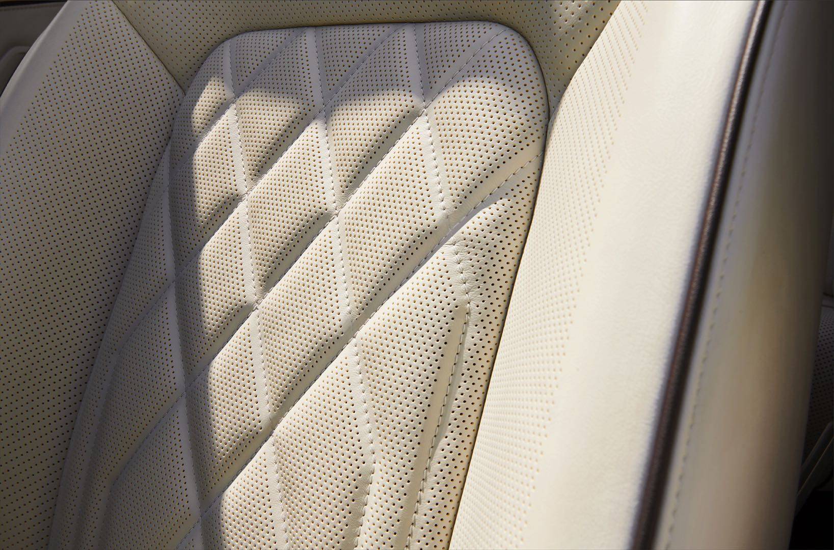 座椅采用NAPPA高级真皮材料,菱形纹路相当有格调,缝线精密工整,耐看耐用。