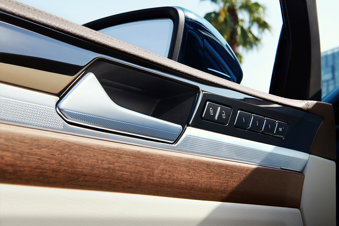 车身侧面的线条依旧是那么整洁有力,腰线从前翼子板贯穿至尾部,视觉上非常修长、有张力,而这视觉张力不仅仅来自线条,更多是因为它的车身尺寸,车身长度超5米,轴距超3米,侧裙的镀铬饰条一直延伸至车尾,搭配上多辐式轮圈,竟有种追云逐电的意境。