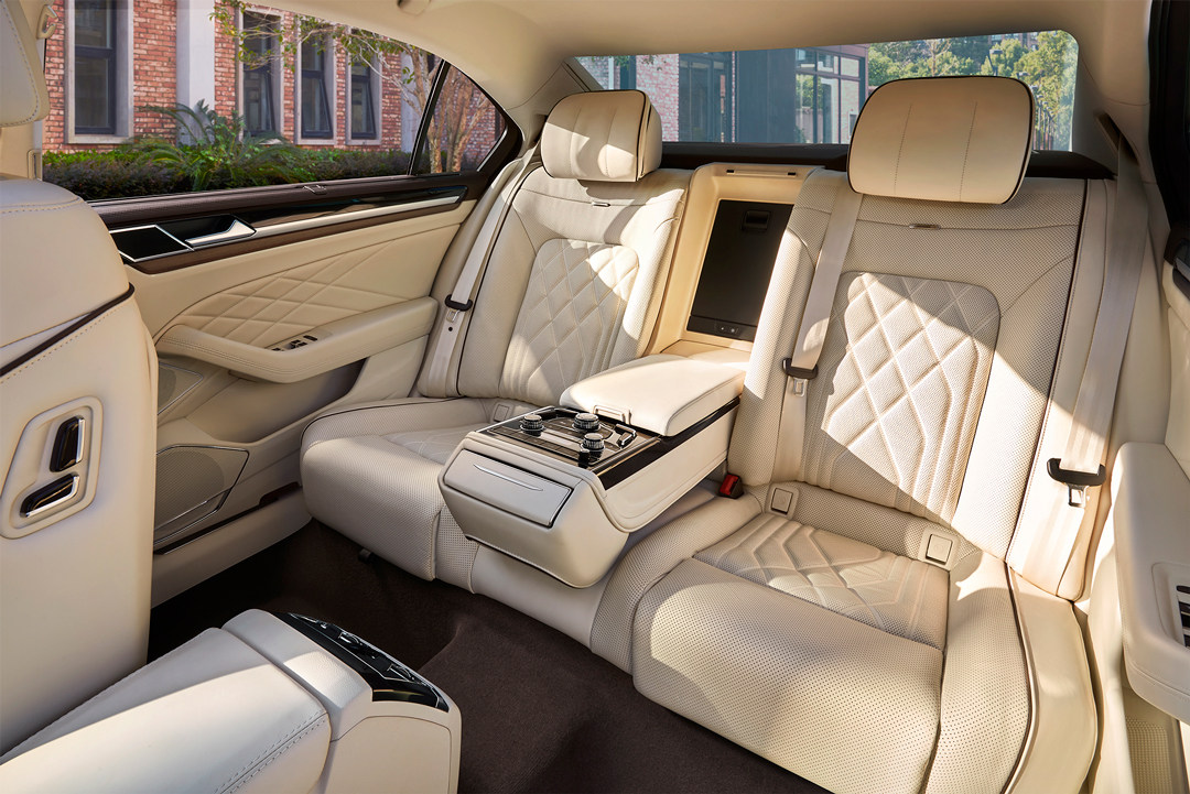 2021款的辉昂,次低配以上的前后排就全部配齐加热/按摩/通风功能,前排有座椅记忆,支持腰部支撑推托;后排支持电动调节前后/靠背/腰部,还有小桌板,可以通过一个后排中央扶手调节,不过还没配上小平板,那应该是留给未来辉昂之上更高级的车型。
