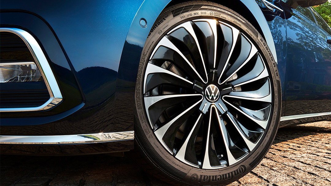 辉昂在白天的辨识度就相对没有那么明显了,但还是做了一些改动,下格栅的线条和轮廓进行了调整,横向镀铬饰条与两侧双C型饰条衔接在一起,跟迈腾和高尔夫的同一个设计语言,看起来更犀利更有动感,既与家族成员有共通之处,率先采用的设计又能体现其地位。