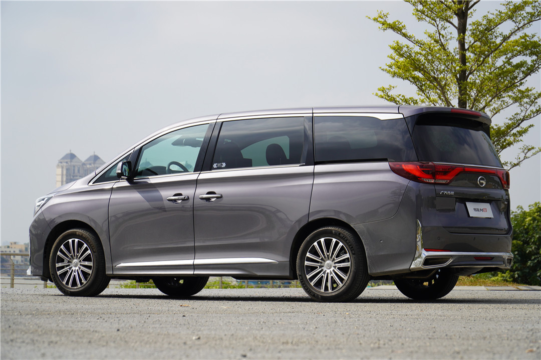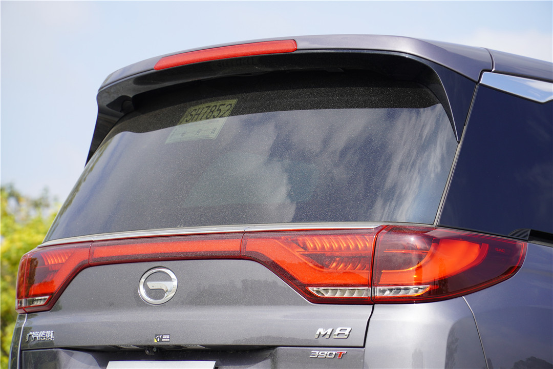 我个人认为侧后方看传祺M8是这台车最好看的地方,这要归功于双腰线的设计,平行的线条配合前后凸起的轮眉,营造出一种肌肉感。当然,贯穿式的尾灯使整台车看上去都要更加的精致,同时富有商务气息。
