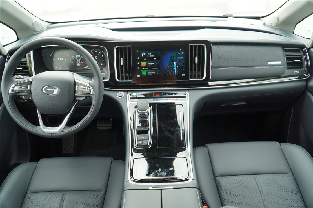 10.1英寸中控屏搭载传祺家族最新的ADiGO智能物联系统,内置QQ音乐,高德地图,并且还搭载了前后双语音助理架构,不过在实际体验中,语音识别感觉一般般,并且语音控制范围有限。所以坐在后排的老板如果想使用车上的功能,还是让更加听话的司机以及秘书处理吧。
