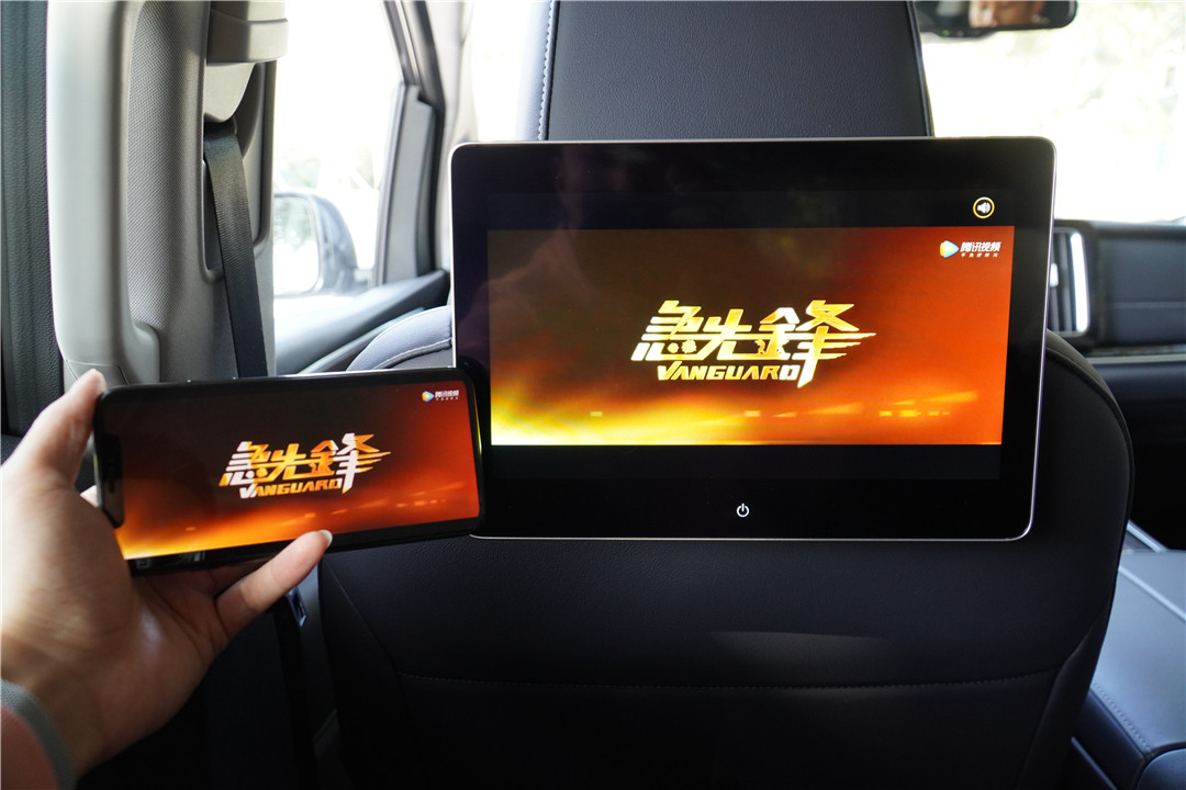 不仅如此,顶配车型还为第二排座椅设置了娱乐系统,即两块10.1英寸触控屏,不仅可以设置导航、音乐功能,还支持苹果与安卓的投屏功能。