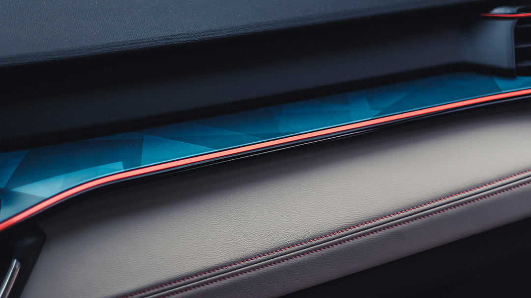 首先,在外观设计方面,领克06沿用了大部分领克现有车型的家族式设计元素,如分体式大灯、悬浮式车顶、轮毂撞色设计等,品牌特征相当突出;而在新车C柱加入的“棱面机甲”和“射线密码”装饰件、Z字形运动腰线等细节则为这款新车带来了更高的辨识度;而由于作为小型SUV的领克06只有4340mm的车长、1820mm的车宽以及2640mm的轴距,使其看上去显得十分小巧精致,看起来甚至有一些“高档玩具”的感觉。
