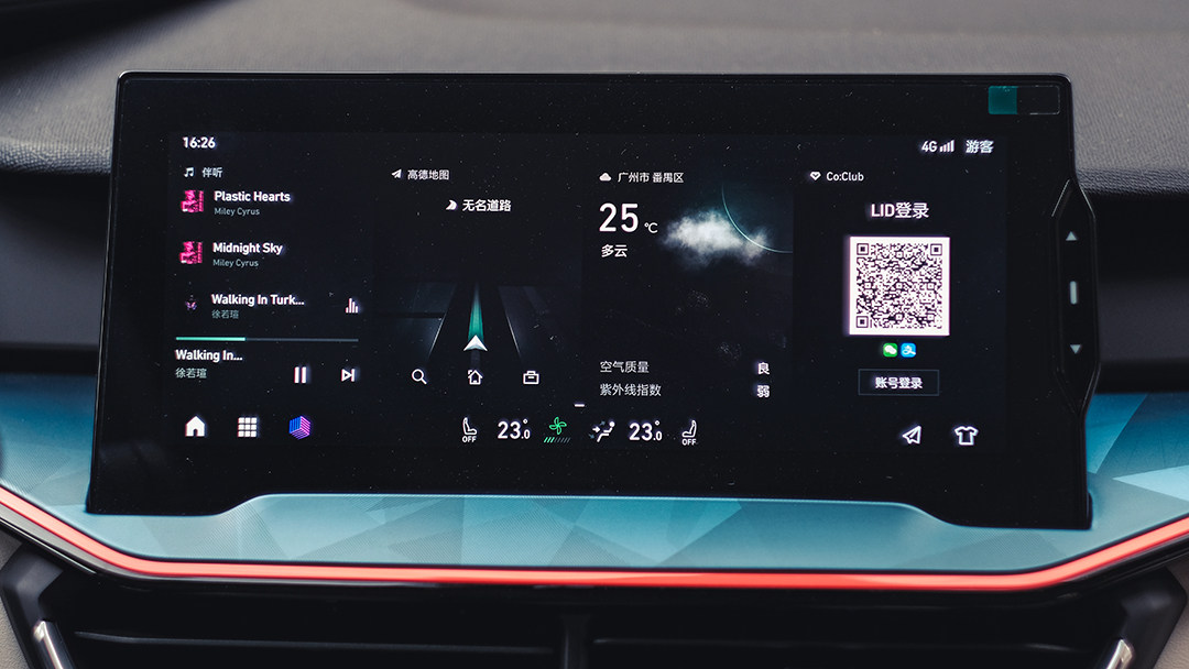 科技功能是领克06的一大看点,此次教授试驾的耀Halo车型作为仅次于科技先锋版的次顶配车型,在科技配置方面可以说是应有尽有。首先,10.25英寸的中控触摸屏是全系标配的,其显示清晰度和色彩表现都比较出色,且采用了悬浮式设计,即便滑动时界面切换动作不够顺畅,在视觉感受方面还是能够带来足够强的科技感。而在这个车机系统中,在线影音娱乐、内置高德地图、天气、语音识别控制等主流智能功能都有配备。