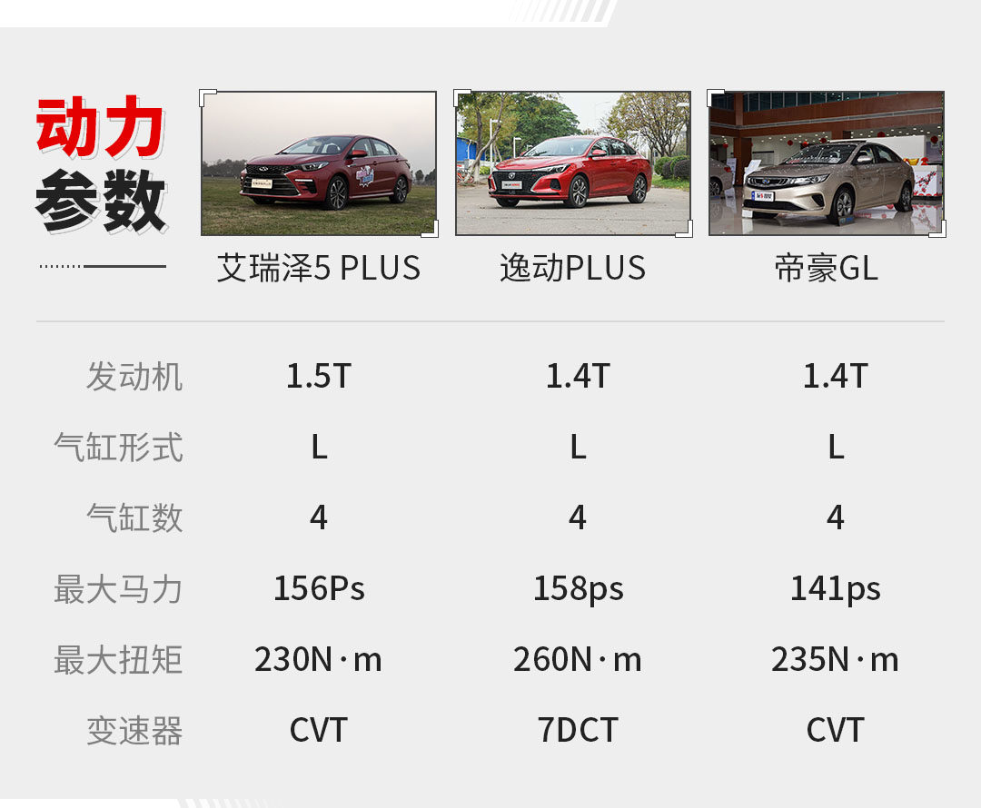 在动力方面,艾瑞泽5 PLUS提供两款发动机,其中1.5L发动机最大116Ps马力,峰值扭矩143N·m,这个动力只是作为入门的选择;而我们试驾的1.5T涡轮增压发动机,发动机燃油热效率高达37.1%,最大马力156Ps,峰值扭矩230N·m,与艾瑞泽GX的动力参数也是保持一致,这两款发动机均提供手动和CVT变速箱可选。