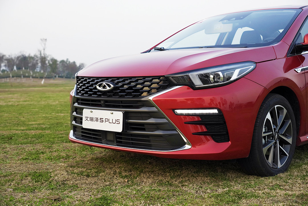 我们试驾的艾瑞泽5 PLUS前脸设计采用了有点类似于雷克萨斯的纺锤造型,进气格栅分为上下两个部分,占据了前脸大部分的位置,加上犀利的线条刻画,营造了运动凌厉的风格;另外一个版本则是传统的一体式进气格栅,标准的六边形造型加上六条横幅镀铬点缀,传递了一种时尚大气的既视感。二者可兼顾不同年龄群消费者的审美,可任君选择。