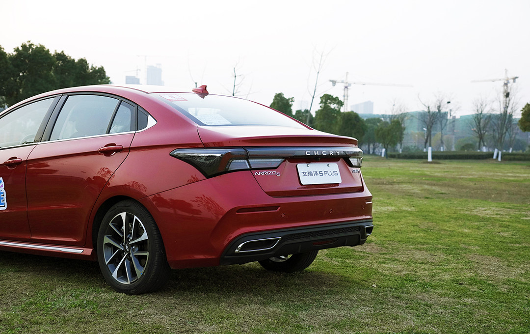 艾瑞泽5 PLUS的尾部还有点小鸭尾的造型,更是能增添一些运动感,而贯穿式尾灯的造型设计扩展了视觉宽度,中间也换上了奇瑞的英文LOGO,更显时尚;菱形的双排气装饰也能更能够在运动氛围的营造上锦上添花。整个尾部层次分明,体现了奇瑞不错的设计水准。